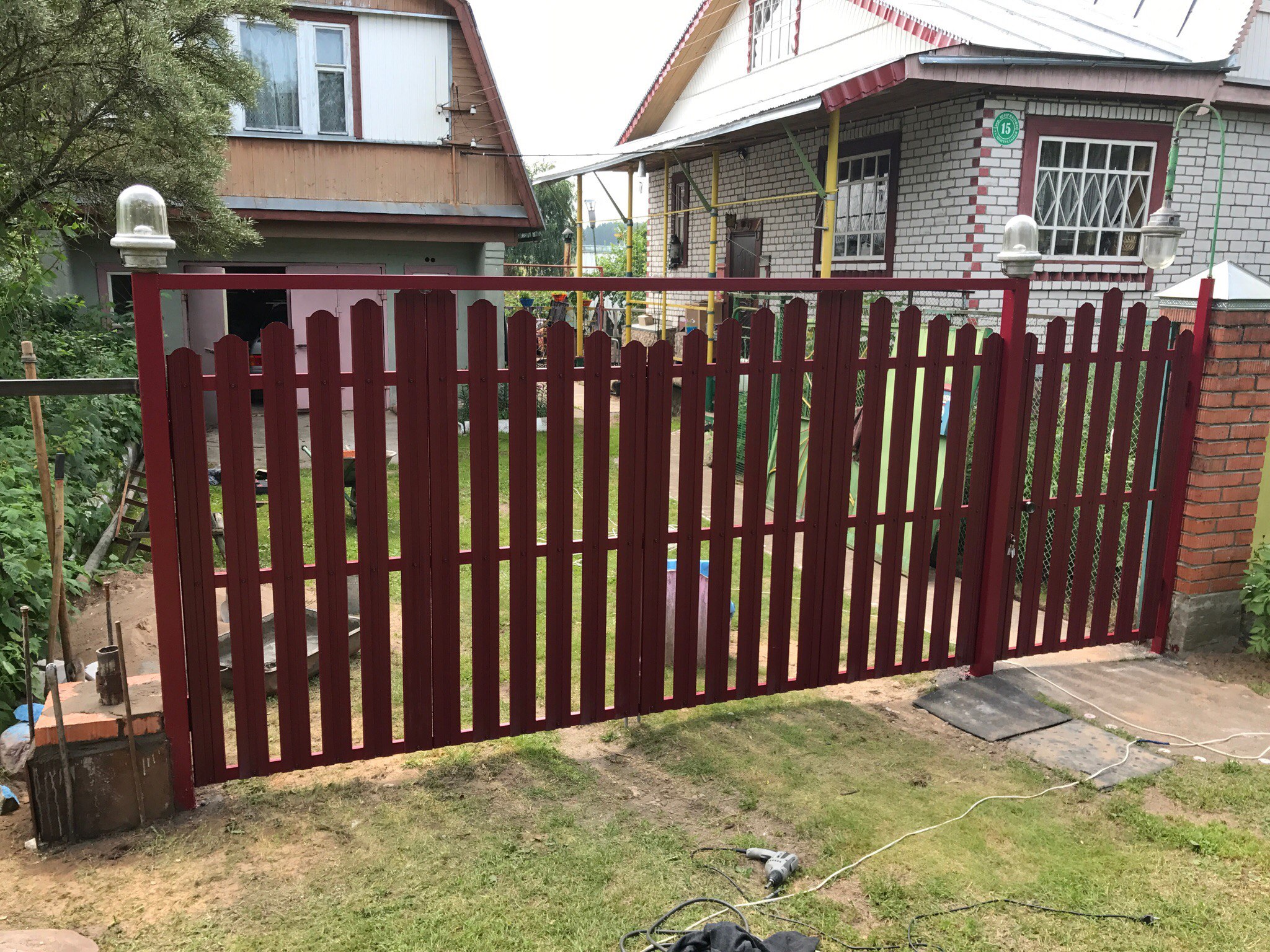 Ворота из евроштакетника распашные пример 5